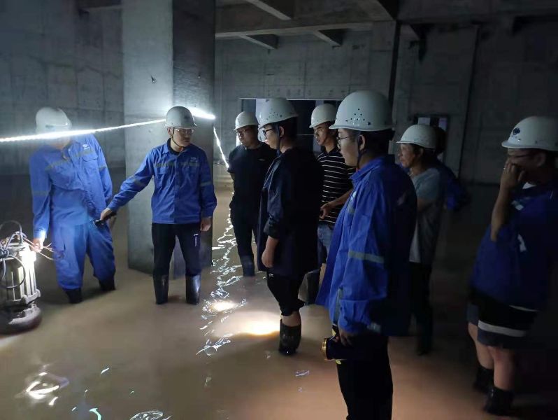 中原分公司周口貴和家園棚改A區(qū)項(xiàng)目部清理地下車庫施工現(xiàn)場(chǎng)積水
